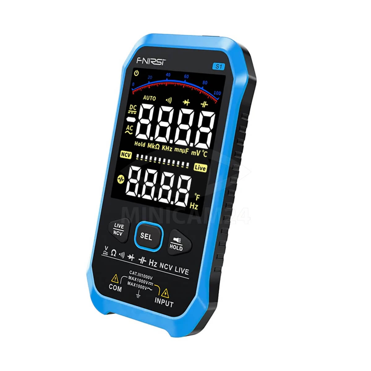 Портативный цифровой мультиметр FNIRSI S1 представляет собой инструмент для точных измерений в различных условиях. Он обеспечивает широкий диапазон измерений, включая напряжение AC/DC до 1000 В, сопротивление от 0 Ом до 100 МОм, ёмкость от 0 нФ до 10 мФ, частоту и температуру. Пользователь может выбирать между автоматическим и ручным выбором пределов измерений.